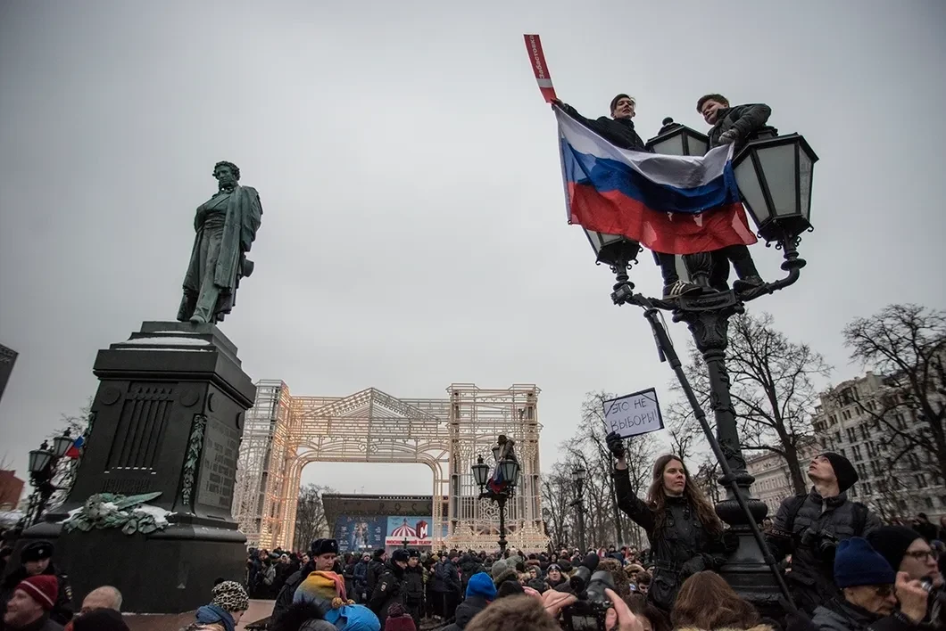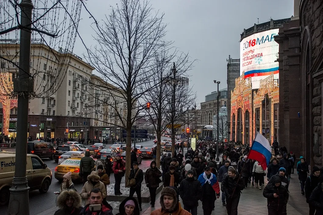Участники выступают против отсутствия альтернативы на президентских выборах.Фото: Виталий Кавтарадзе, специально для «Новой газеты»Фото: Виталий Кавтарадзе, специально для «Новой газеты»Фото: Виталий Кавтарадзе, специально для «Новой газеты»Участники мирной акции «взаимодействуют» с полицией. Фото: Виталий Кавтарадзе, специально для «Новой газеты»И вновь молодежь заняла места на фонарных столбах — такое происходит на кадой акции Навального. Фото: Виталий Кавтарадзе, специально для «Новой газеты»Автозак демонстрирует полицейское государство. Тем не менее, на этот раз полиция вела себя корректно по отношению к участникам акции. Фото: Виталий Кавтарадзе, специально для «Новой газеты»Фото: Виталий Кавтарадзе, специально для «Новой газеты»Фото: Виталий Кавтарадзе, специально для «Новой газеты»Тверская улица стала местом протестных гуляний, но не было единого мнения, куда следует идти — так колонны протестующих разделились. Фото: Виталий Кавтарадзе, специально для «Новой газеты»Фото: Виталий Кавтарадзе, специально для «Новой газеты»Фото: Виталий Кавтарадзе, специально для «Новой газеты»Фото: Виталий Кавтарадзе, специально для «Новой газеты»