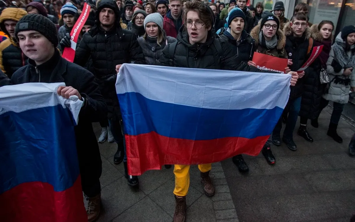 Девочки кричат вместе с толпой: «Россия против Путина!»