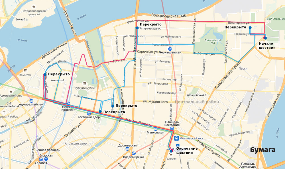 Как участники акции в Петербурге шли до Дворцовой и Восстания. Карта маршрутов