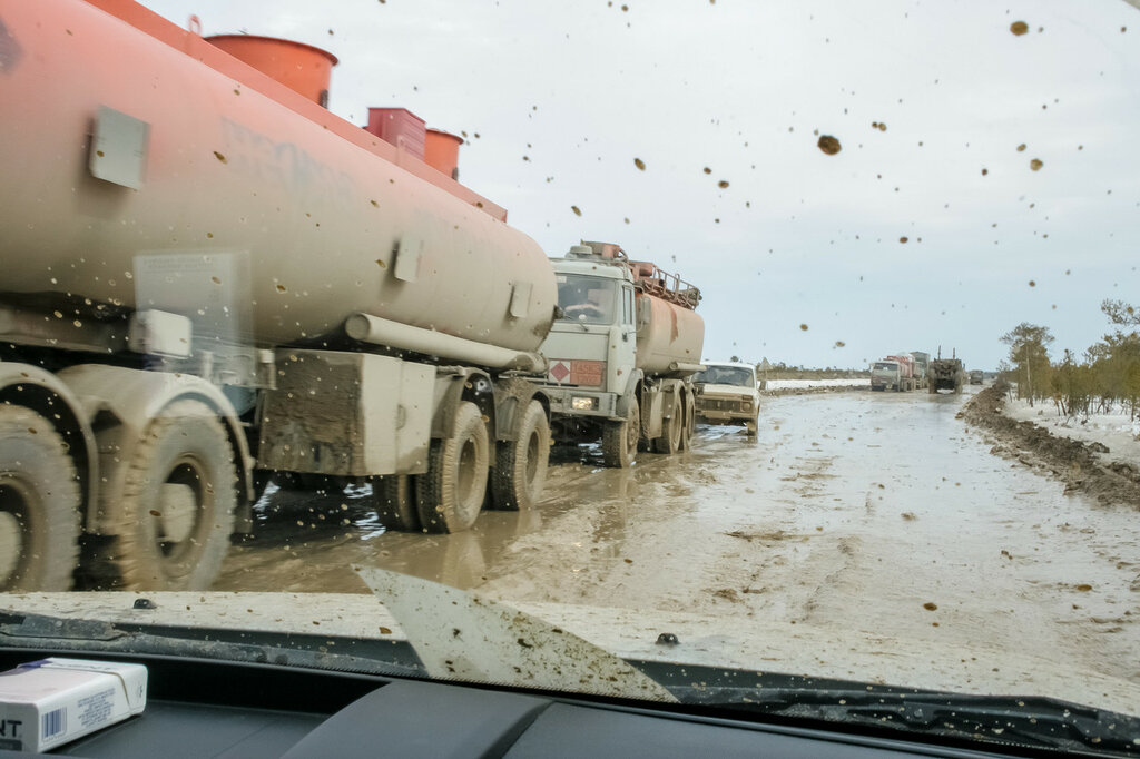03 - все, пацаны! Теперь можете курить прямо здесь, - пробурчал наш водитель Геннадий и первым сунул папироску в зубы. Пробка из машин на поплывшем зимнике - это не пробка в городе, где вседа найдется объезд или типа того...
