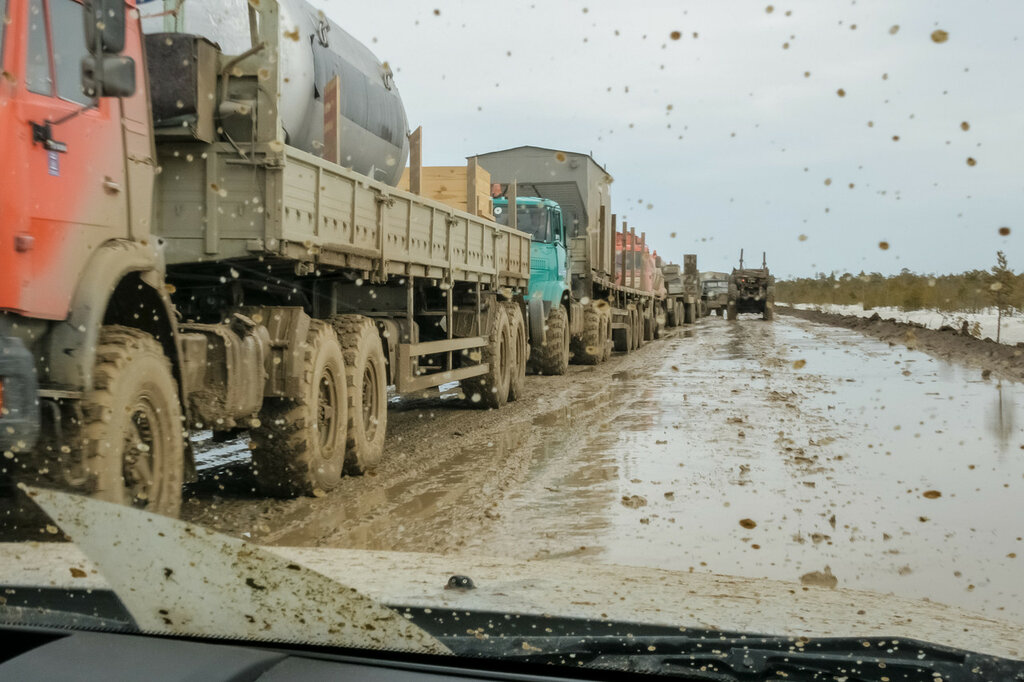 05 - сзаду подпирают, спереду - напирают. Кругом мат, гул дизелей, сизые дымы выхлопа да какая-то общая покорность ситуации. Бульдозера ближайшего до зимы ждать, надо самим как-то решать. Повезло с тягачами в ту ездку, почти...