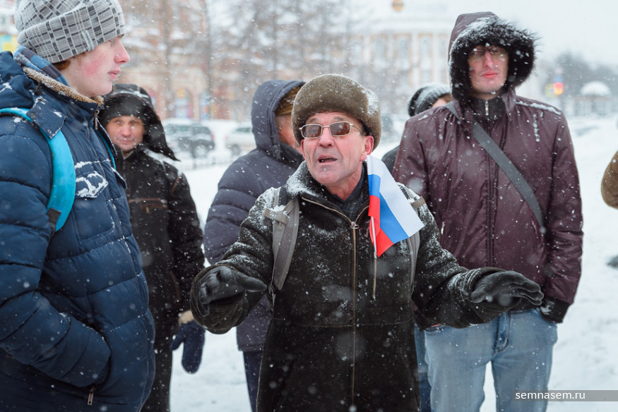Несмотря на морозную и ветреную погоду, собравшиеся активно поддерживали дискуссию больше часа. Было много общих политических вопросов, которые сторонники Навального обсуждали уже много раз.