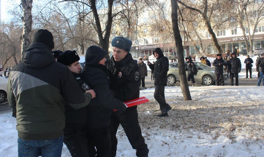 Задержания начались сразу же, как только участники стали собираться на площадке перед универмагом "Уфа", откуда должно было начаться шествие к Дворцу спорта. Полиция и ОМОН были уже готовы к силовым акциям, поскольку власти еще 15 января отказали организаторам в согласовании акции и объявили ее "несанкционированной". 24 января законность отказа в согласовании признал Кировский райсуд Уфы. А 26 января тот же суд арестовал на пять суток координатора штаба Навального Лилия Чанышеву. Штаб же Навального заявил, что считает акции согласованными, поскольку правительство пропустило сроки, установленные законодательством для ответа на заявку. И к 14 часам дня 28 января на площадке перед универмагом "Уфа" собралось не менее 500 человек.