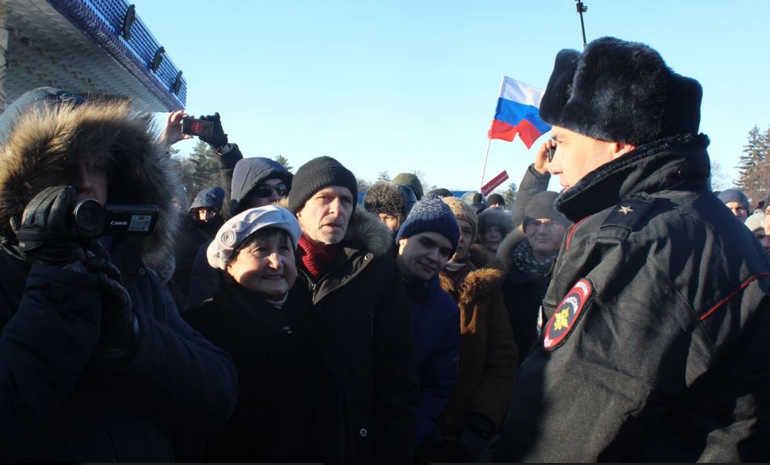 15 часов 20 минут. Колонна участников акции входит на площадь имени Ленина. Справа, через дорогу — уфимская мэрия и горсовет. Слева —ледовый городок и здание Русского драмтеатра. Лидеры протестующих принимаю решение переместиться на площадку перед театром, где вполне достаточно места.