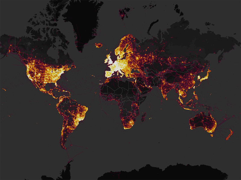 В некоторых районах карта оказалась почти полностью темная. Эксперты обратили внимание на очаги активности в зонах боевых действий, в том числе в Сирии и Ираке.