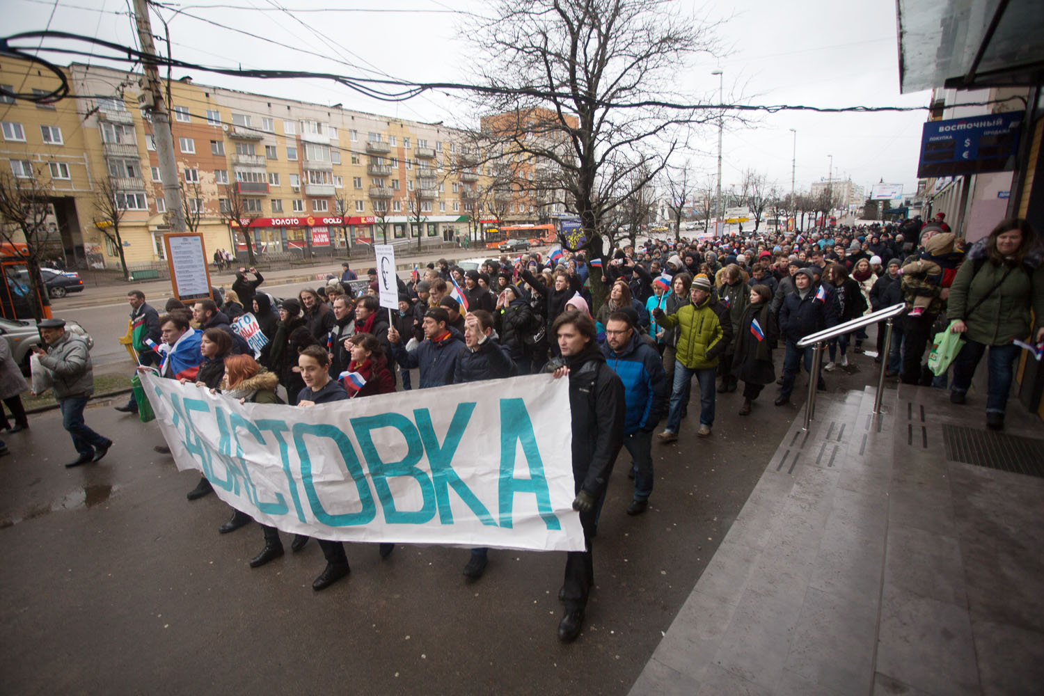 В Калининграде полиция разрешила участникам митинга в 250–300 человек провести полуторакилометровое шествие по городу, после чего соратники Егора Чернюка, организатора акции, координатора калининградского штаба Навального, образовали вокруг него живое кольцо, чтобы тот не был задержан.
