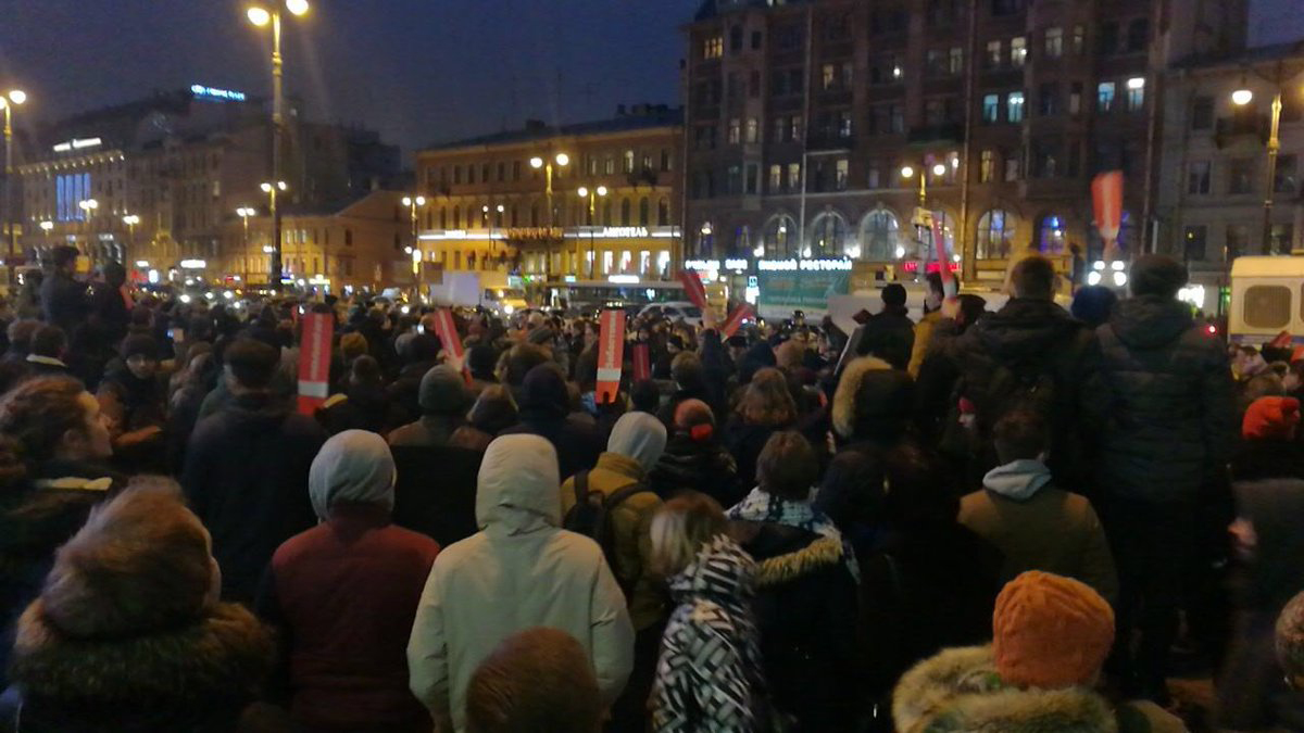 Участникам несанкционированного шествия в Питере позволили погулять по Невскому и дойти до Дворцовой площади. В Москве несогласные дошли до Думы, а некоторые и до Дома правительства.
