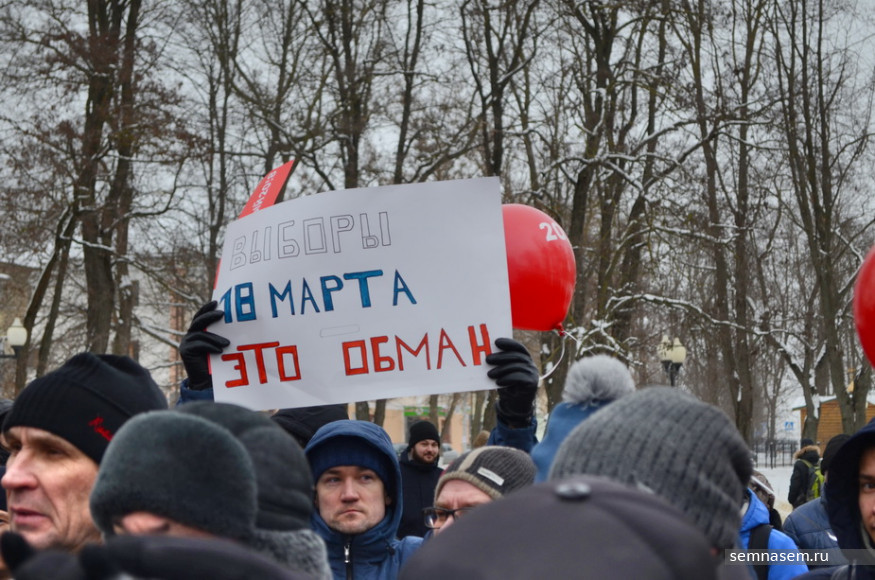 По всей России 28 января прошли митинги в поддержку «Забастовки избирателей». Акцию организовывает оппозиционер Алексей Навальный, которого не допустили до президентских выборов. По официальным данным МВД, на улицы в России в этот день вышли около 4,5 тыс. человек. В Москве на несанкционированный митинг по тем же данным вышло около 1 тыс. человек. По подсчетам издания «Медуза», участников на протестной акции было в три раза больше. Сайт «ОВД-Инфо» сообщил, что по всей России задержали больше 250 участников.