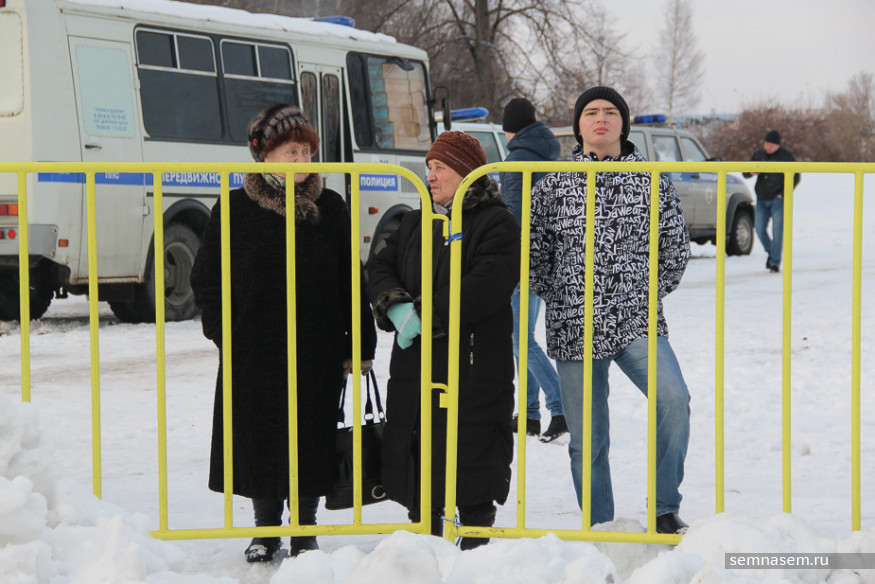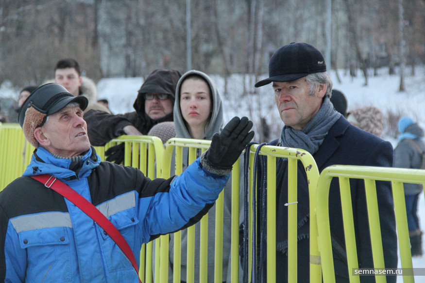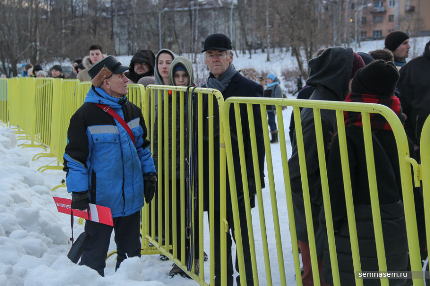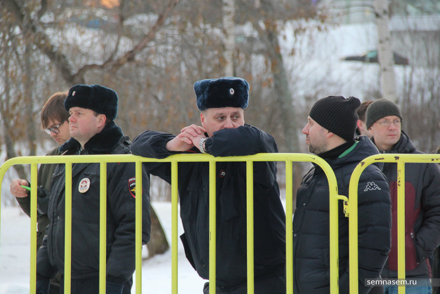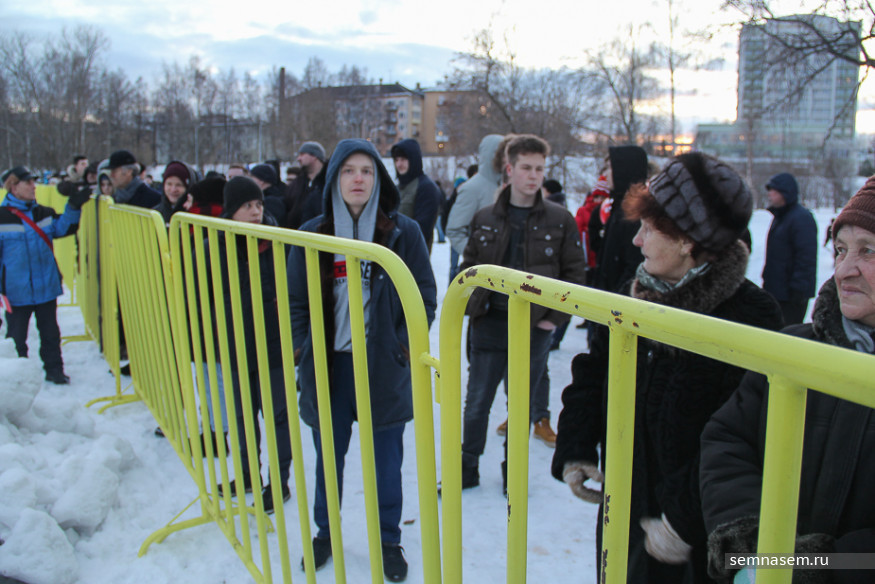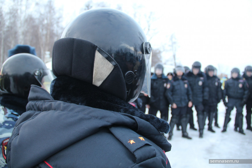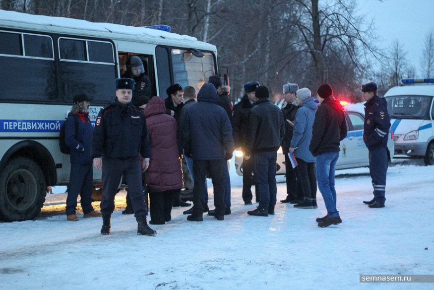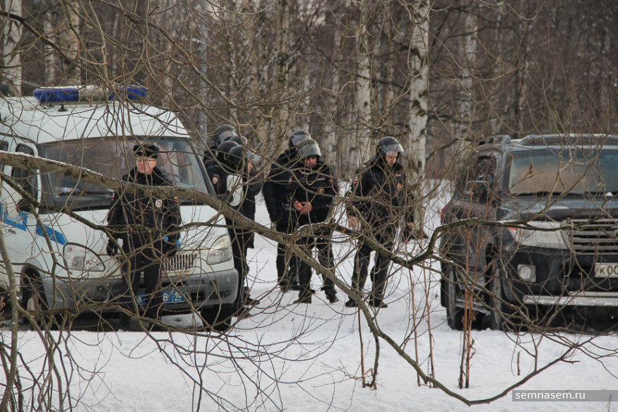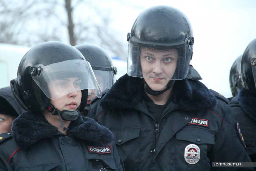 Мужчину выносят за периметр, на раскатанном до льда снегу остается лежать его черная кепка. Четвертым сотрудники правопорядка уводят известного петрозаводского активиста Виталия Флеганова.