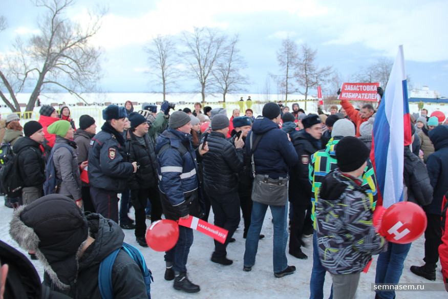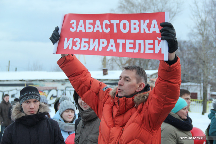 «Забастовка избирателей» прошла в Петрозаводске 28 января в гайд-парке в устье реки Лососинка. Акция не была согласована, городская администрация организовала в этом месте в это же время спортивно-оздоровительное мероприятие. Из примерно 150 участников «забастовки» полиция задержала пятерых. Как это было — в репортаже корреспондента «7x7».
