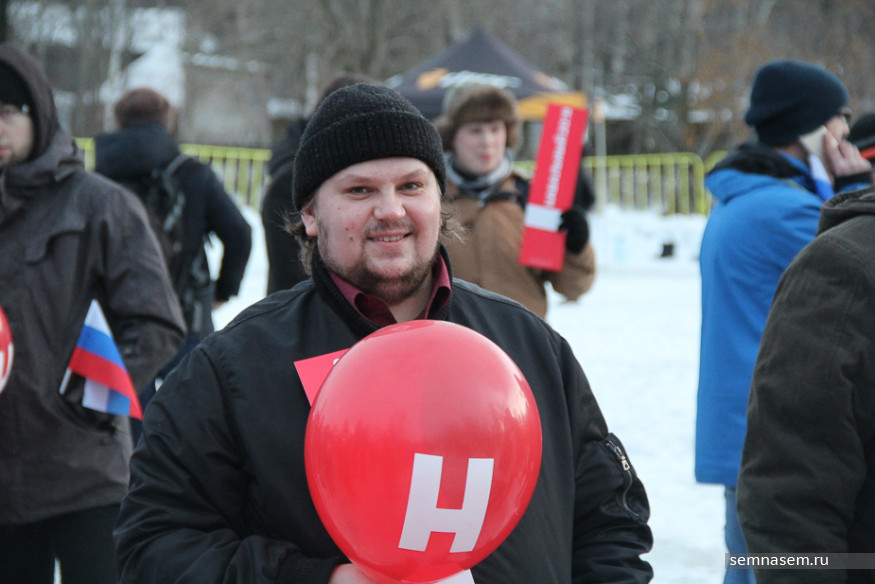 В 16:10 под рамку-металлодетектор входят молодые люди с плакатами и красными воздушными шарами с белой буквой «Н». Представители органов правопорядка не пускают их на территорию гайд-парка. По словам представителя городской администрации, устраивать митинг в этот день нельзя, так как мэрия проводит спортивно-оздоровительное мероприятие.