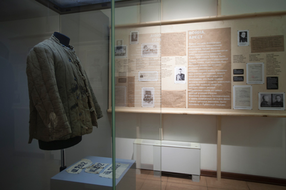 © Музей-заповедник «Царицыно» Экспозиция выставки «Писатель и тайна: Александр Солженицын». Слева: лагерная телогрейка А.И. Солженицына, не позднее 1950-х (Экибастуз, Казахская ССР). Из архива А.И. Солженицына — Выставка «Писатель и тайна», которая в канун юбилейного года открылась в Царицыне, — пример противоестественности существования человека, писателя в таких условиях.
