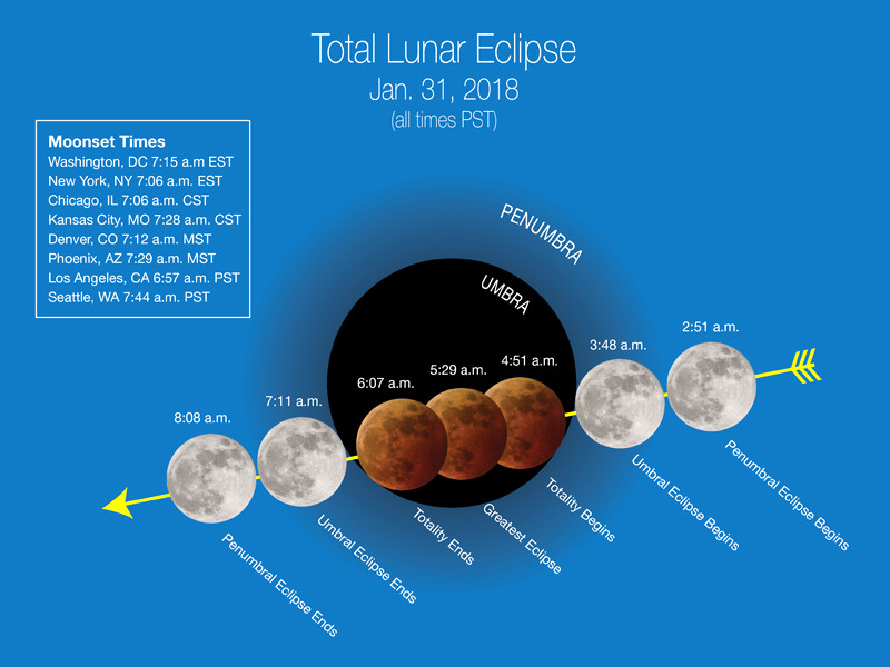 Наблюдать его смогут жители ряда континентов. В Северной Америке явление лучше всего будет видно в западной части, а также на Аляске и Гавайях. Для жителей этих территорий "лунное шоу" начнется рано утром в среду, 31 января.