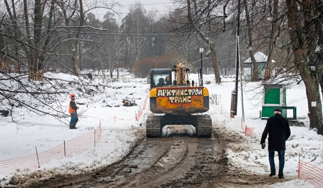 Гусеничные экскаваторы, тракторы, КамАЗы утюжат парк без всякого стеснения. Плиты пока замечены лишь у входной зоны.