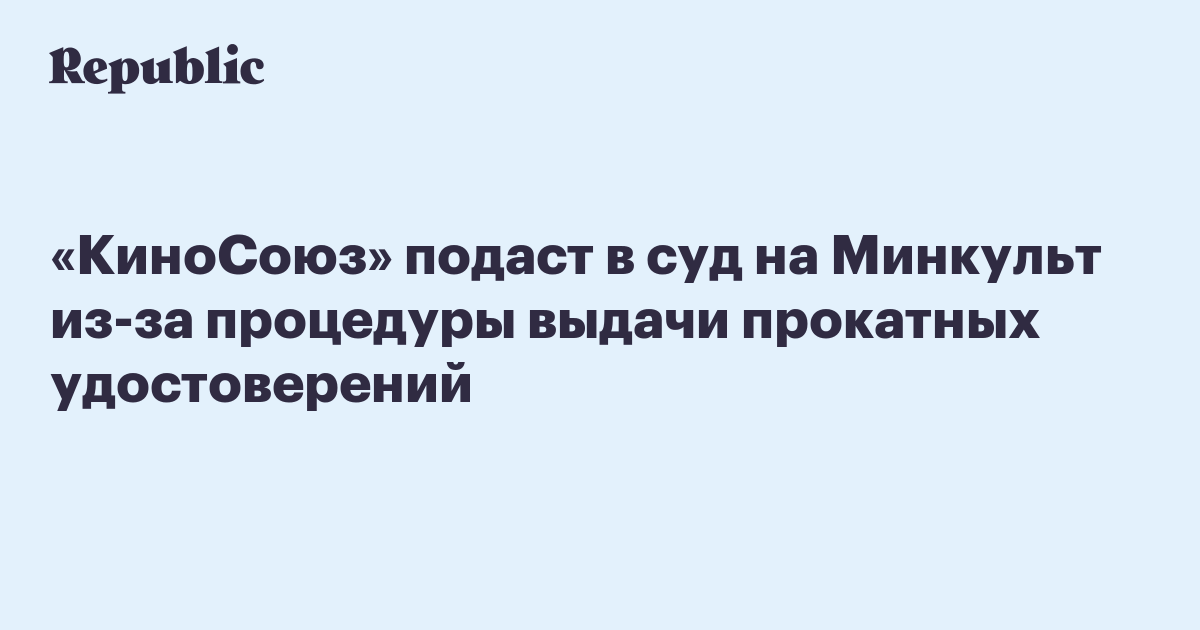 Общественная организация «КиноСоюз» подаст в суд на Министерство культуры «по факту использования прокатных удостоверений в качестве инструмента цензуры». Об этом сказано в заявлении компании, которое получила «Медуза».