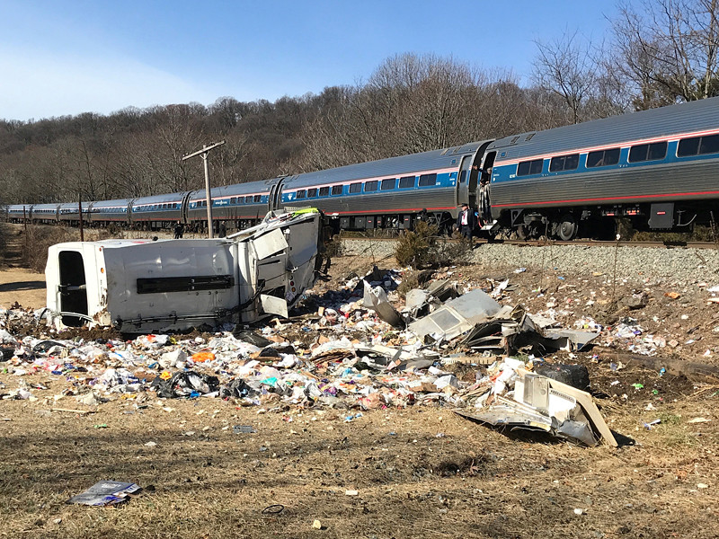 По словам конгрессмена Грега Уолдена, поезд столкнулся с мусоровозом на железнодорожных путях. Он добавил, что пассажиры с медицинским образованием сразу после инцидента бросились оказывать помощь людям, находившимся в грузовике.