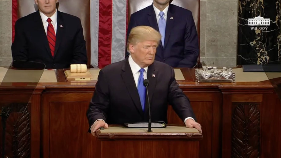 По законам жанра первую — и основную по времени часть — обращения Трамп посвятил делам внутренним. Он сообщил собравшимся об экономическом росте, которого удалось добиться его администрации, о преобразованиях в регулятивной сфере, потребовал от Конгресса $1,5 трлн на развитие инфраструктуры.