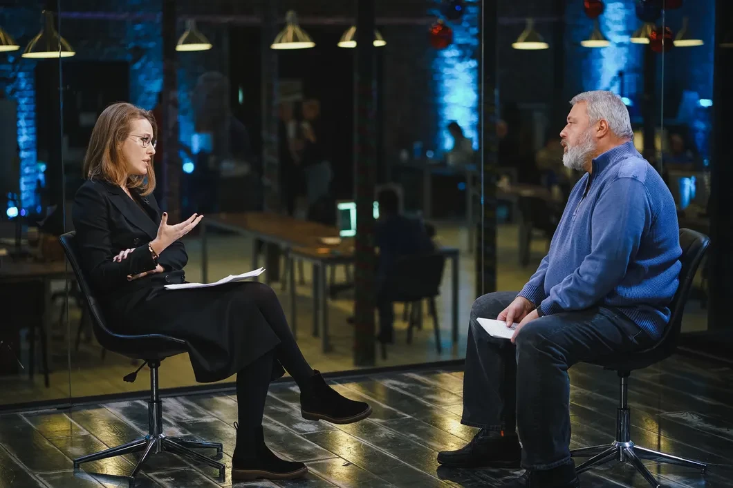 — Всем добрый вечер. Сегодня у меня в студии будет разговор с Дмитрием Андреевичем Муратовым, главным редактором «Новой газеты».