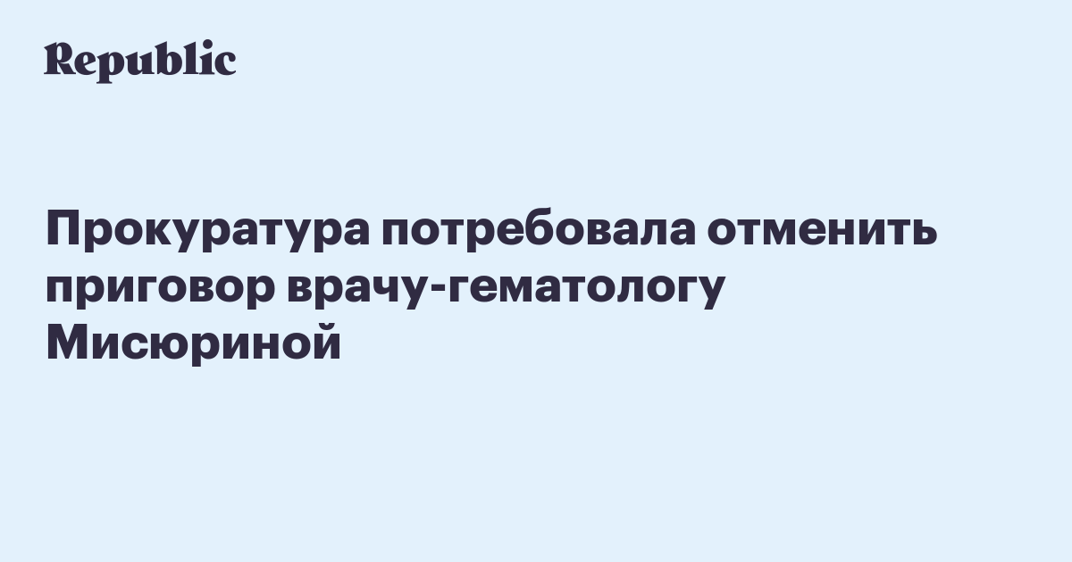 Прокуратура потребовала отменить приговор врачу-гематологу Мисюриной