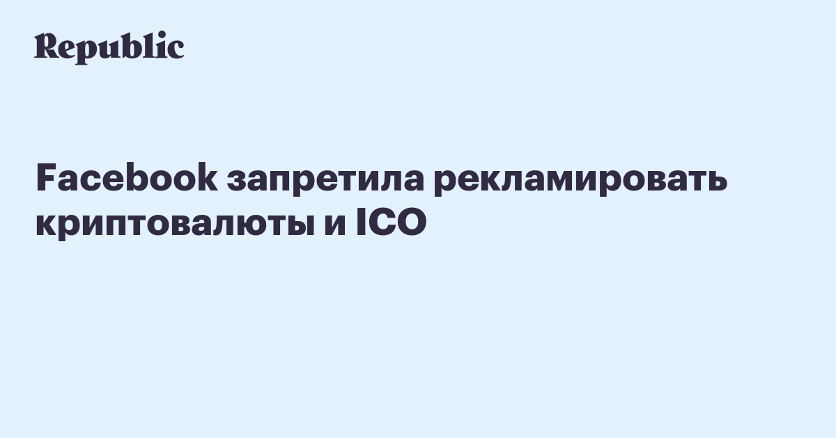 Facebook запретила публикацию объявлений, где рекламируются криптовалюты, ICO (initial coin offering, аналог IPO для криптовалют) и бинарные опционы. Об этом сообщается в блоге социальной сети.