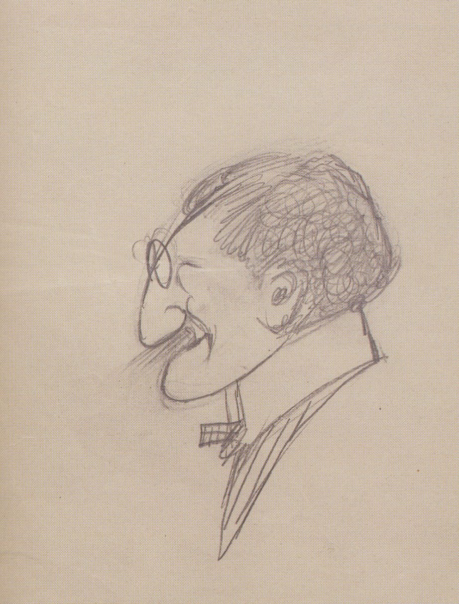 Эти рисунки, извлеченные публикаторами из трех архивов, и украшают салернский сборник: шарж на сидящего за столом Зиновия Гржебина (пародийный еще и тем, что перекликается с известным изображением Фаддея Булгарина – но зеркально: и в изобразительном, и в политическом смысле), зарисовка Александра Рославлева, почти законченный карандашный портрет Веры Шварсалон, автошарж, профильный набросок Николая Гумилева и другие.
