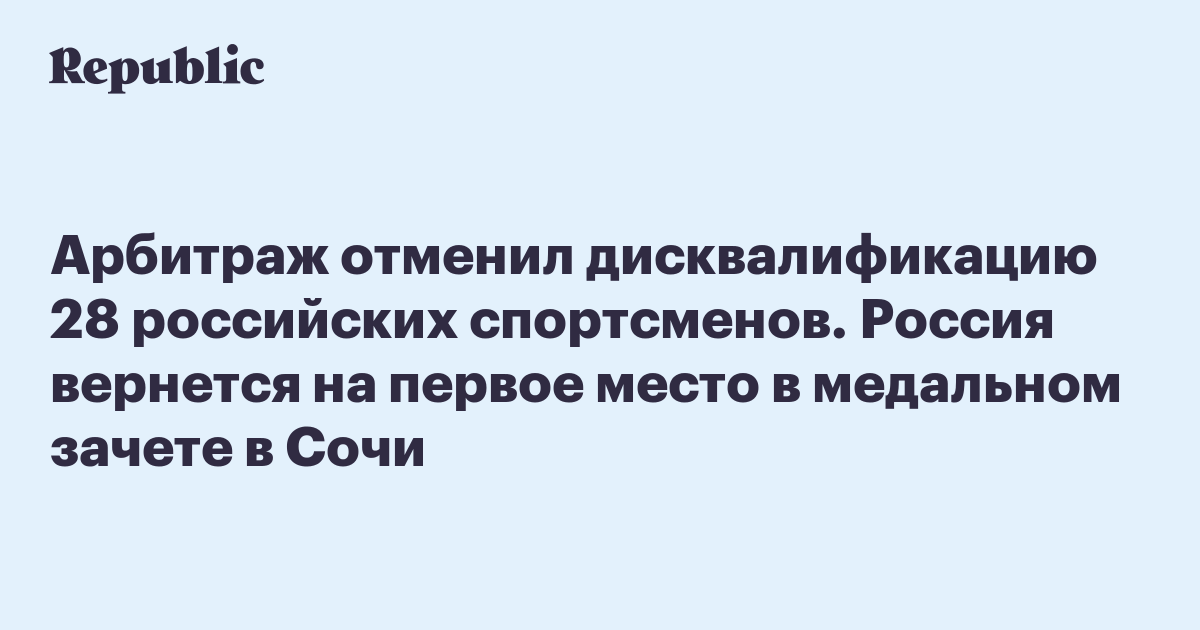 Арбитраж отменил дисквалификацию 28 российских спортсменов. Россия вернется на первое место в медальном зачете в Сочи