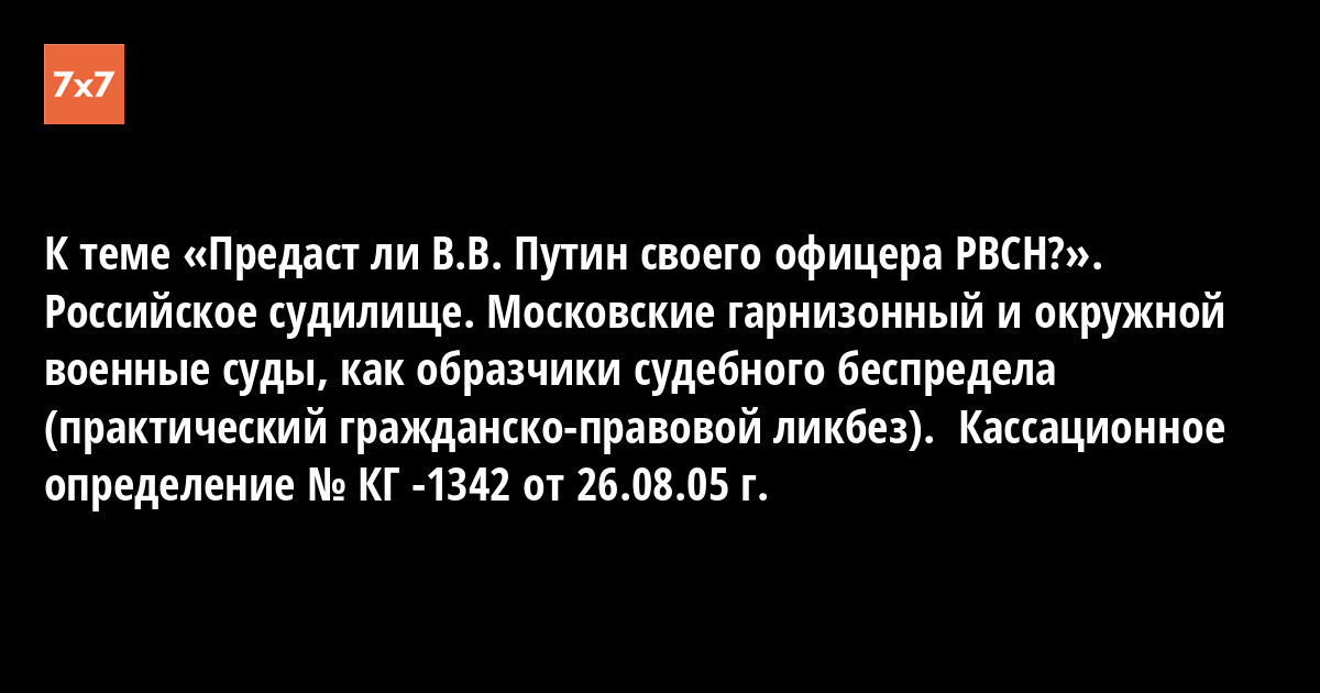 К теме «Предаст ли В.В. Путин своего офицера РВСН?». Российское судилище. Московские гарнизонный и окружной военные суды, как образчики судебного беспредела (практический гражданско-правовой ликбез). Кассационное определение № КГ -1342 от 26.08.05 г.