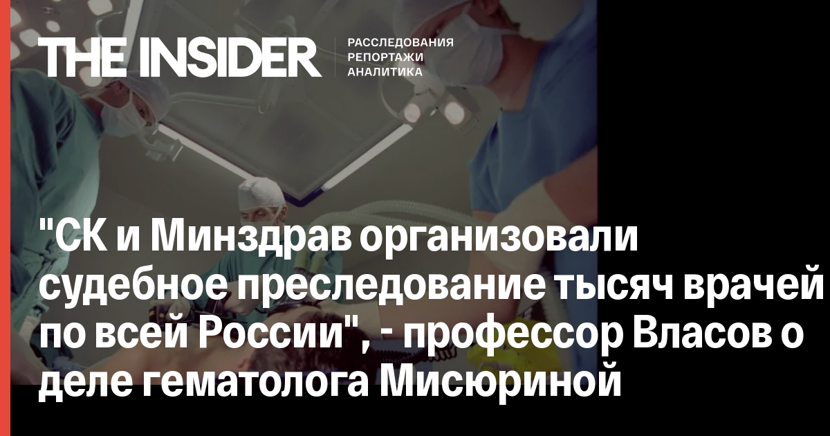 Следственный комитет выступил с еще одним разъяснением по делу врача-гематолога Елены Мисюриной, приговоренной к двум годам колонии после смерти пациента. По мнению СК, решение прокуратуры отменить приговор и освободить Мисюрину из-под стражи «ставит под сомнение компетентность» ее сотрудников. Следователи напомнили, что в 2017 году против врачей было возбуждено 1791 уголовное дело, и ни одно из них «не вызывало такого резонанса, как дело Мисюриной». Ранее российские медики и пациенты вступились за гематолога. Петицию с требованием пересмотреть ее дело подписали несколько десятков тысяч человек. Профессор НИУ ВШЭ, вице-президент Общества доказательной медицины Василий Власов пояснил The Insider, в чем странность приговора гематологу, почему Минздрав выступает на стороне следователей и какую ответственность перед пациентами несут врачи в других странах.