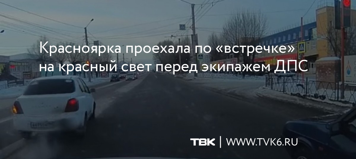Красноярка проехала по «встречке» на красный свет перед экипажем ДПС