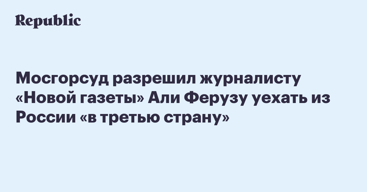 Мосгорсуд разрешил журналисту «Новой газеты» Худоберди Нурматову (Али Ферузу) выехать из России «в третью страну». Об этом пишет само издание, онлайн-трансляцию заседания также ведет «Медиазона».