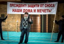 Ранее в воскресенье в мечети Стрелковой прошел митинг, на котором жители "поляны протеста" потребовали от Владимира Путина защитить их постройки от сноса. Они развернули три больших плаката с надписями: "Президент! Защити от сноса наши дома и мечеть!", "Президент! Останови произвол крымских властей!" и "Требуем встречи с президентом!".