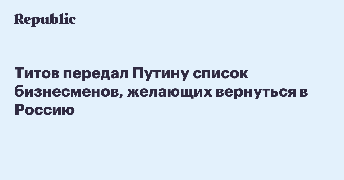 Титов передал Путину список бизнесменов, желающих вернуться в Россию