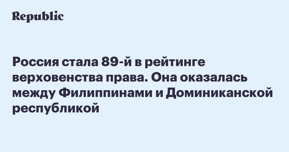 Россия стала 89-й в рейтинге верховенства права. Она оказалась между Филиппинами и Доминиканской республикой