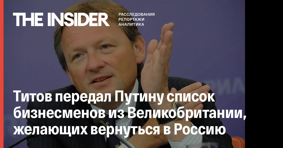Титов передал Путину список бизнесменов из Великобритании, желающих вернуться в Россию
