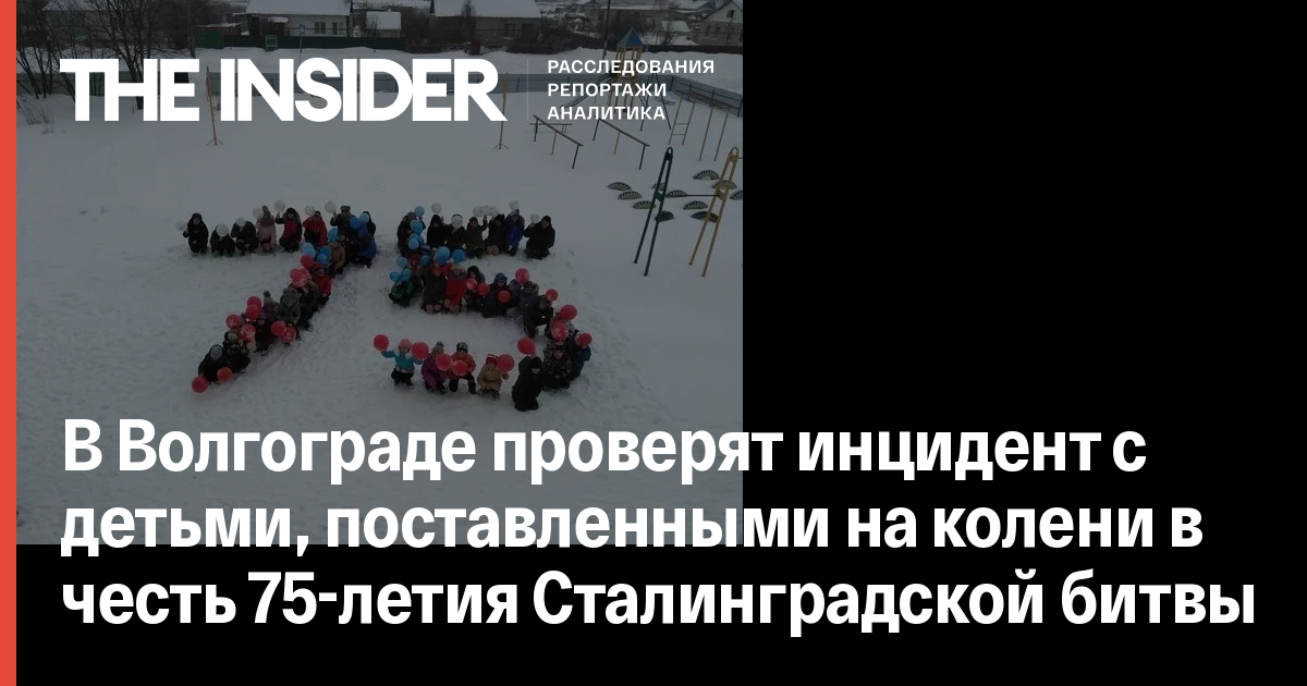 В Волгоградской области уполномоченный по правам ребенка Нина Болдырева организует проверку после того, как воспитанников детского сада поставили на колени в снег в честь 75-летия победы в Сталинградской битве. Об этом детский омбудсмен сообщила «Эху Москвы».