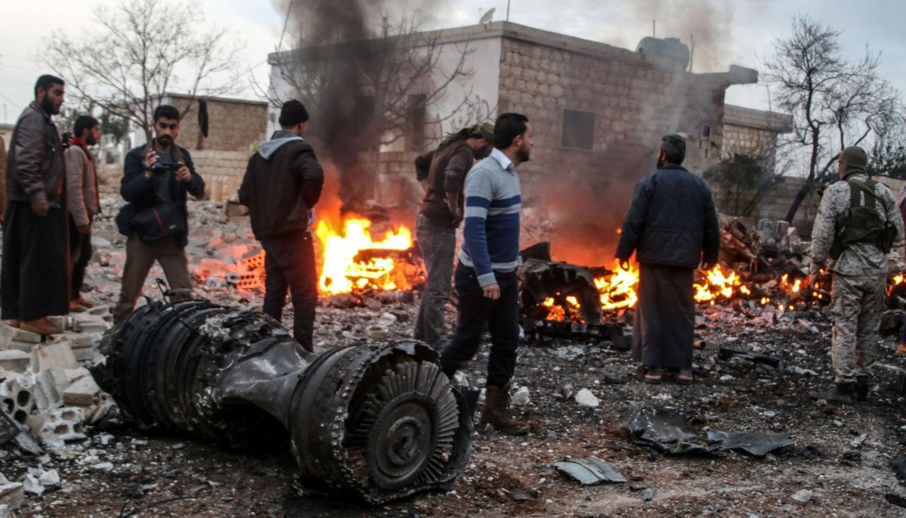 Abdalla Saad / EPA / Scanpix / LETA Обломки сбитого Су-25 в восточном Идлибе, 3 февраля 2018 года