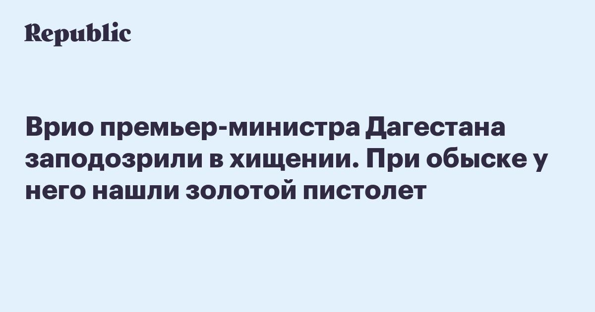 Врио премьер-министра Дагестана заподозрили в хищении. При обыске у него нашли золотой пистолет