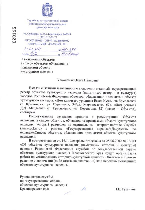– Раз есть документы от службы охраны памятников, получается, что новый владелец земли нарушает закон, начав снос, – говорит Анастасия Тамаровская. – Не знаю, чем объяснить этот его шаг. В Красноярск седьмого февраля Путин приезжает – может, хозяину участка порекомендовали к этой дате территорию "очистить"?