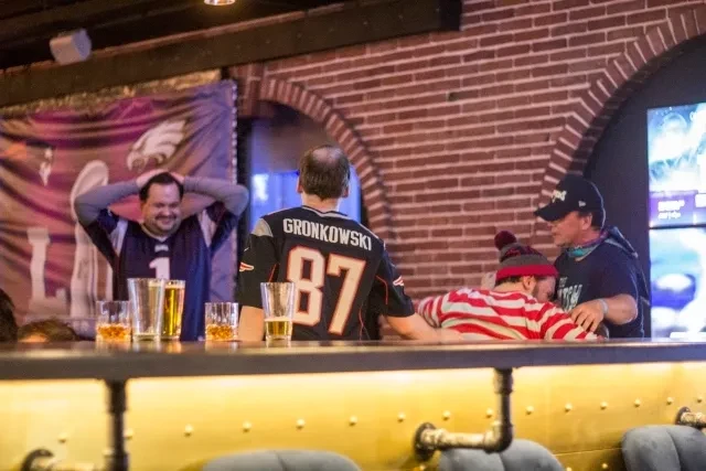 В полтретьего ночи по залу проносится гул. Музыка замолкает. Кто-то, смеясь, встает на колено, пока на большом экране американские ветераны поют гимн. Рядом скандируют: «USA! USA! USA!» Потом начинается самая дорогая американская реклама, а затем на поле выбегают игроки «Нью Инглэнд Пэтриотс» и «Филадельфиан Иглз». Пятьсот человек в зале «Йота Арены» вокруг меня поднимают оглушительный гул.