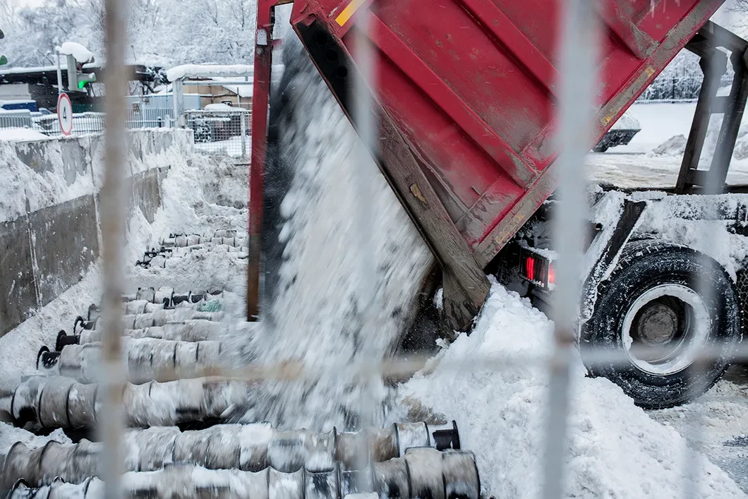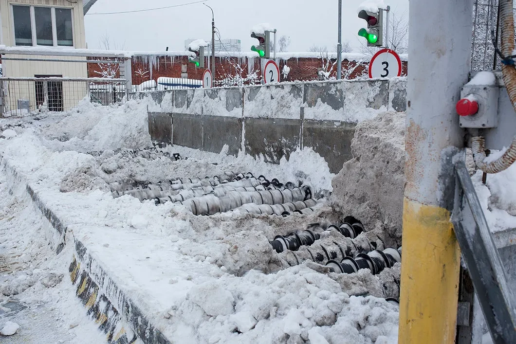 — Снегосплавы начинают функционировать с первым снегом в круглосуточном режиме, — рассказала «Новой» Александра Афиногенова, пресс-секретарь Мосводоканала, в ведении которого находится большая часть станций. — КамАЗы выгружают снег из кузова в камеру приемки, он проходит через постоянно вращающиеся дробилки, потом через решетку, смешивается со сточной водой, температура которой не опускается даже в самые сильные морозы ниже 12 градусов, плавится. Следующий уровень — песколовки, они задерживают мусор. Уже очищенная от бытового мусора вода по канализационным сетям течет на очистные сооружения.