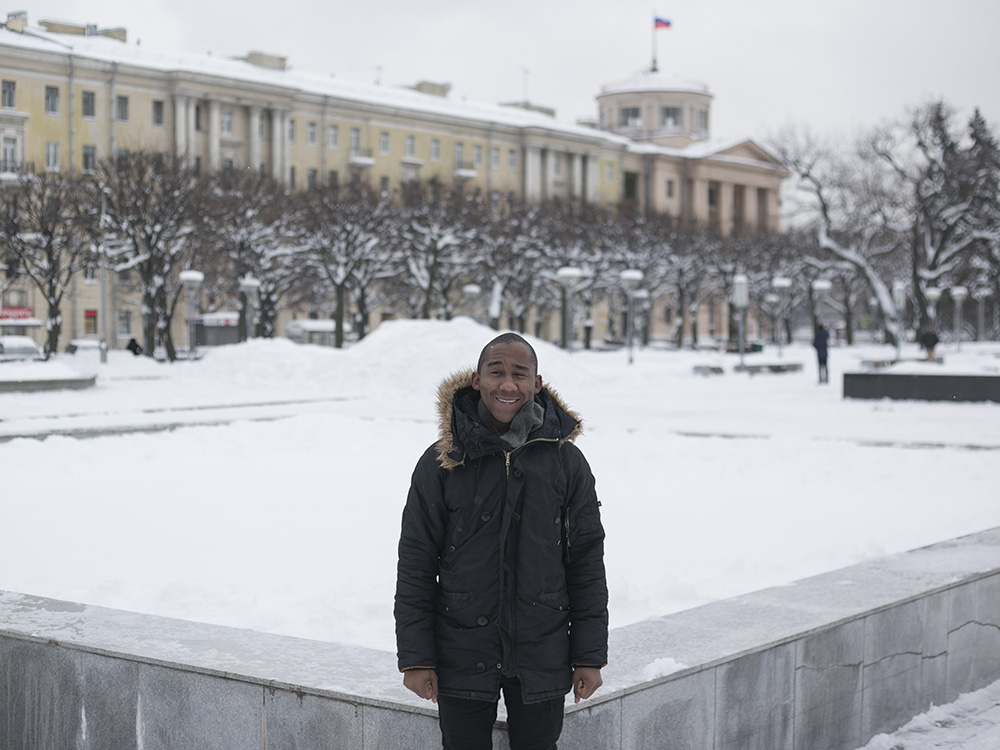 Чанда Михаэль Чишимба переехал в Петербург из города Мафикенг на северо-западе ЮАР четыре года назад и решил остаться в России. Здесь он поступил в университет, занялся организацией мероприятий и музыкой, полюбил холод и стал интересоваться архитектурой.