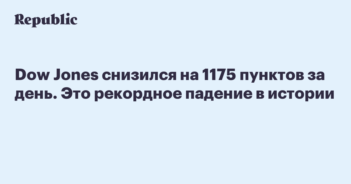 Dow Jones снизился на 1175 пунктов за день. Это рекордное падение в истории