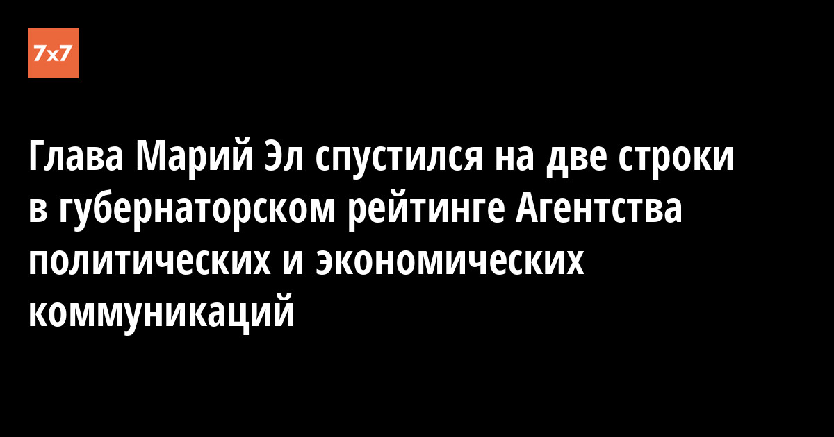Глава Марий Эл спустился на две строки в губернаторском рейтинге Агентства политических и экономических коммуникаций