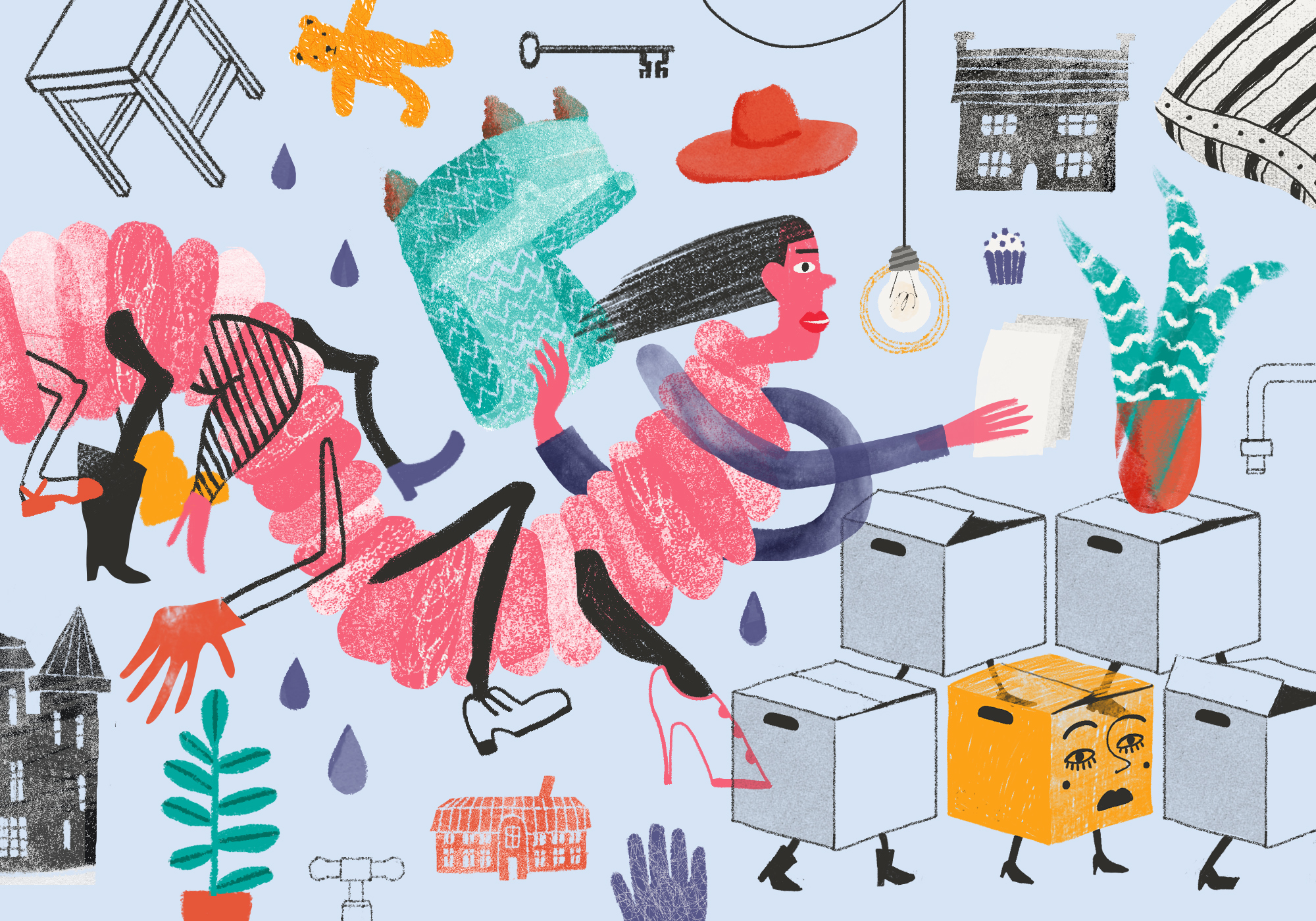 Теперь, когда формальности улажены, можно переезжать. И внезапно месяц, казавшийся необъятным, стремительно скукоживается на глазах. Книжки, учебники, игрушки — это не упаковать, не будучи киборгом. А ведь есть еще обувь — в этом доме, кажется, жили сороконожки. И сорокоручки. Иначе откуда столько перчаток? И шляп. И того, что вообще не поддается классификации.