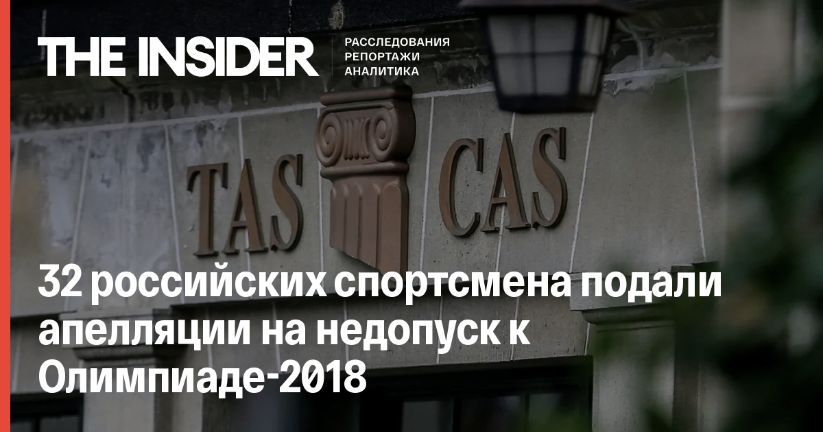 32 российских спортсмена обратились в Спортивный арбитражный суд в Лозанне (CAS) с жалобой на решение Международного олимпийского комитета о недопуске до Зимних Олимпийских игр в южнокорейском Пхёнчхане.