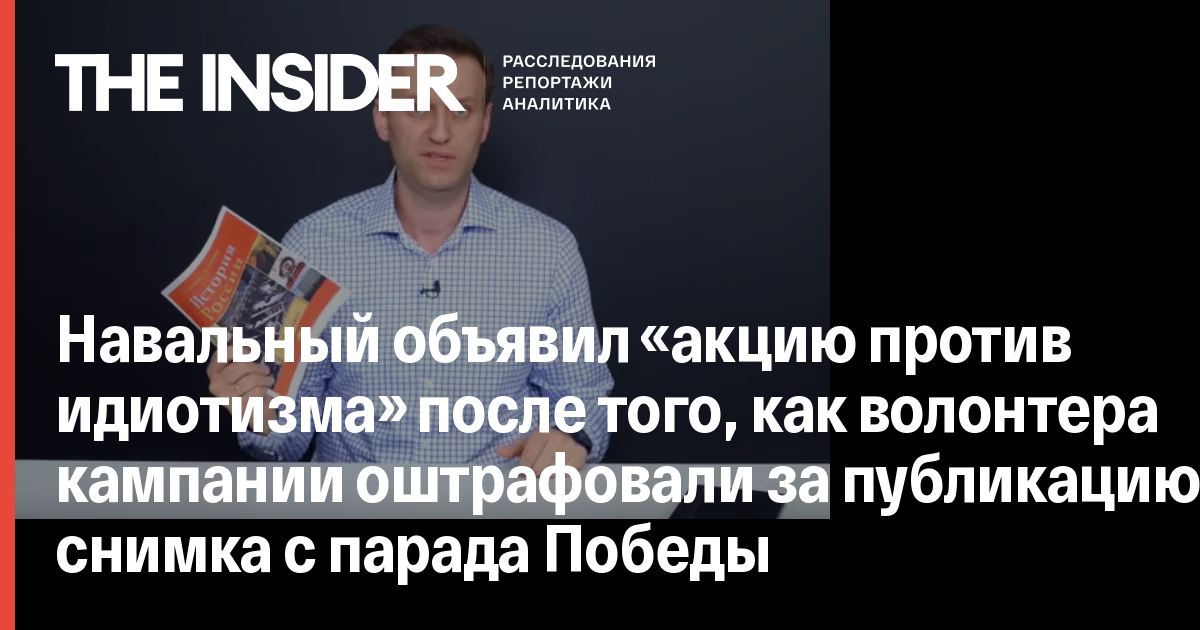 Навальный объявил «акцию против идиотизма» после того, как волонтера кампании оштрафовали за публикацию снимка с парада Победы