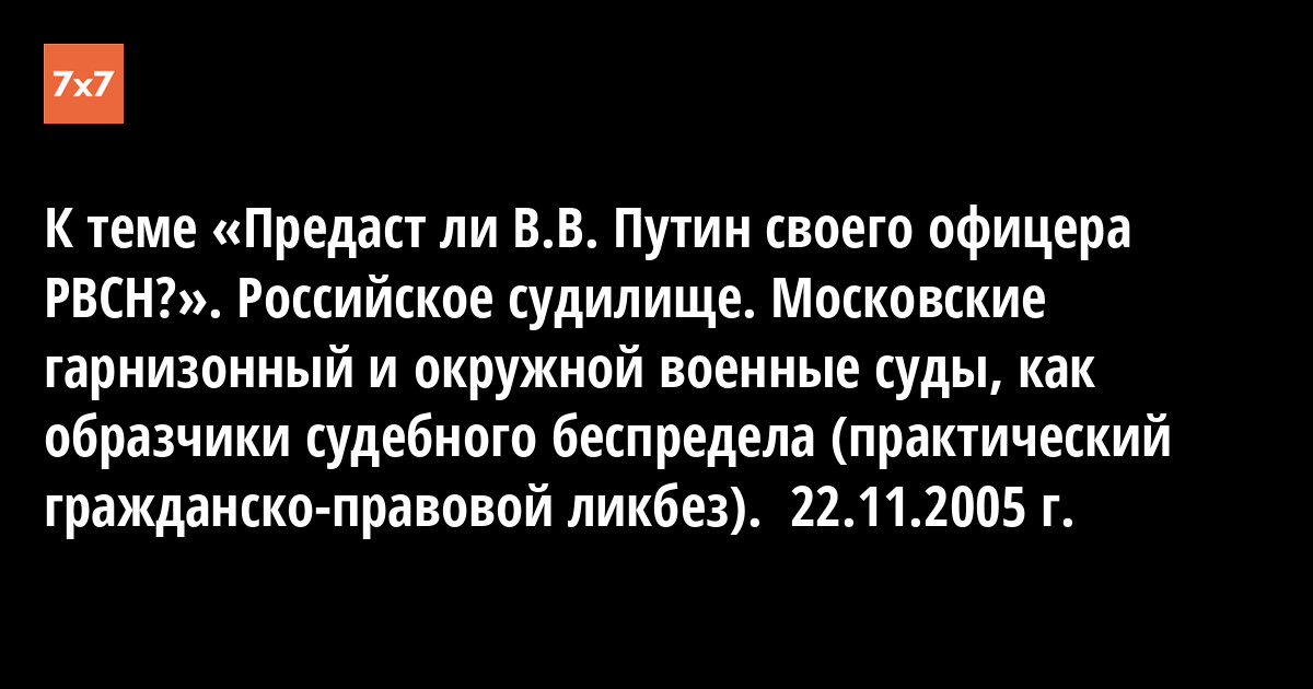 К теме «Предаст ли В.В. Путин своего офицера РВСН?». Российское судилище. Московские гарнизонный и окружной военные суды, как образчики судебного беспредела (практический гражданско-правовой ликбез). 22.11.2005 г.
