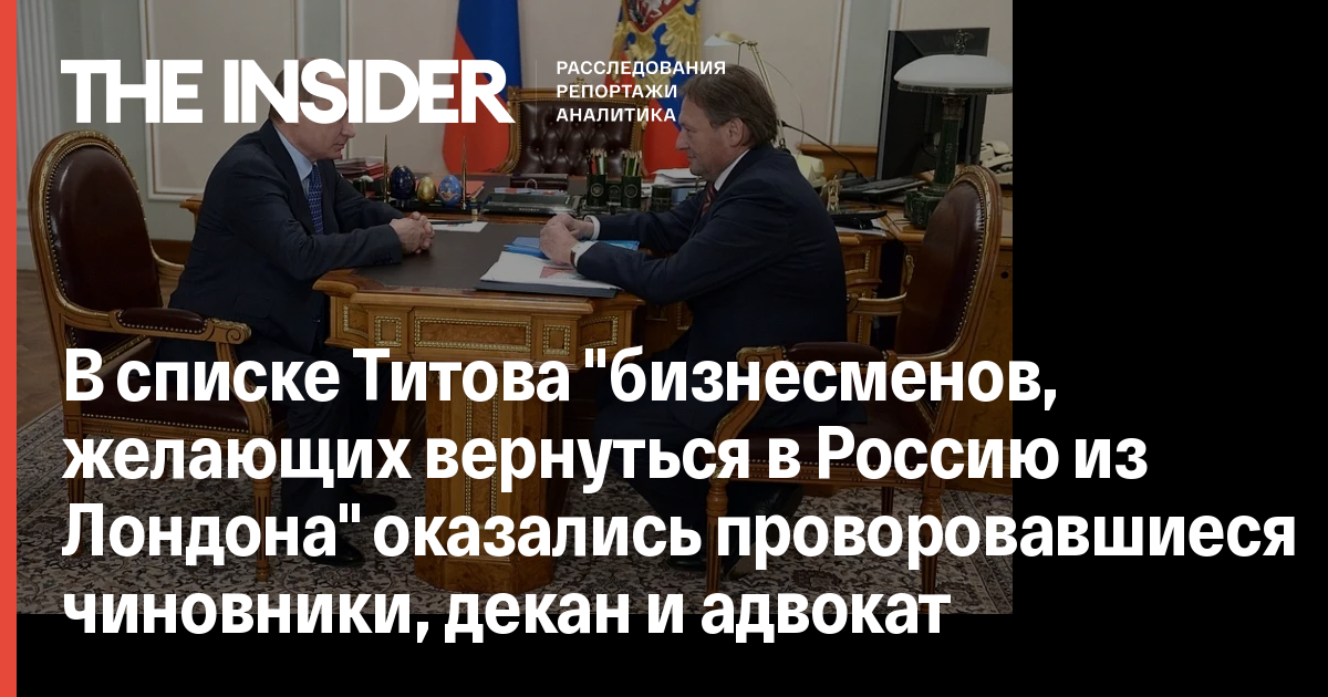 В списке Титова "бизнесменов, желающих вернуться в Россию из Лондона" оказались проворовавшиеся чиновники, декан и адвокат