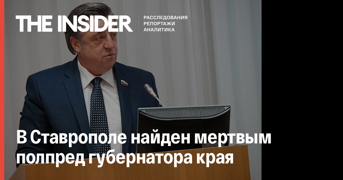 Полномочный представитель губернатора Ставропольского края на Кавказских Минеральных Водах Александр Коробейников найден мертвым в Ставрополе. Об этом сообщает РИА Новости со ссылкой на источник в правоохранительных органах региона.