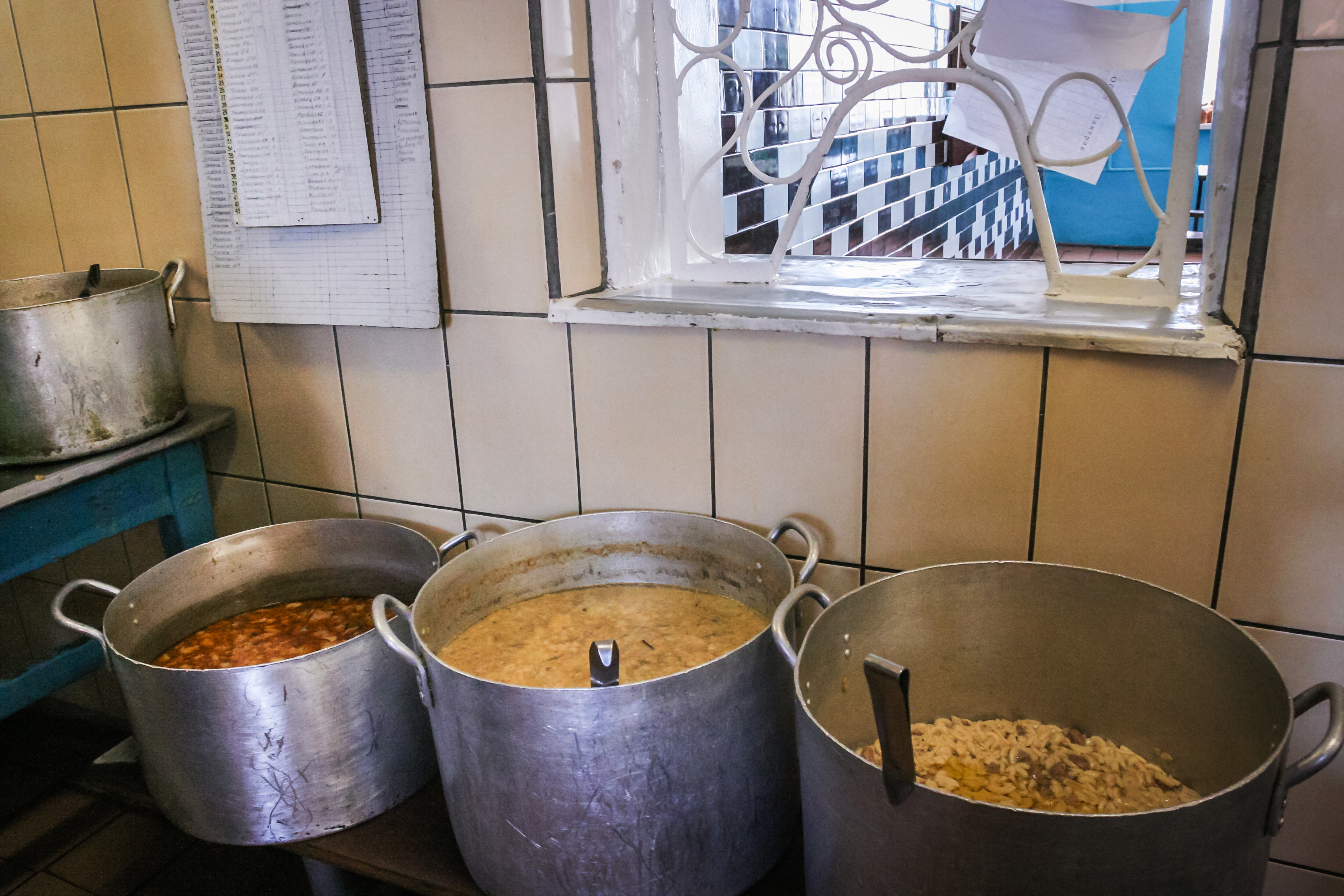 «Я зашла когда в столовую, на столах стояло только по горсти немытой крупы у каждого и по мисочке, в которой грамм 50 водички, разбавленной какой-то приправой. И это обед, то есть самый полноценный у них прием пищи. Они заходят — кто ест, кто не ест, кто эту приправу в крупу выливает, смотрит на нее и уходит; кому-то, наоборот, не достается — они просто выходят молча, оставшись без еды», — вспоминает она.